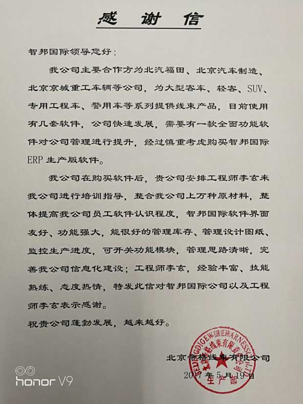 为了更好的实施企业战略规划,满足企业规模化发展的需求,管理层急需整合内部外部资源,实现企业资源专业化管理。经过一番对比试用和市场调研,最终,北京帝格线束有限责任公司决定与智邦国际合作。了解其业务特点和管理需求后,智邦国际工程师第一时间为其部署了一套ERP系统。