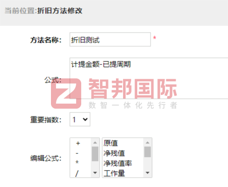智邦一体化ERP天工系列折旧方法修改(局部图)